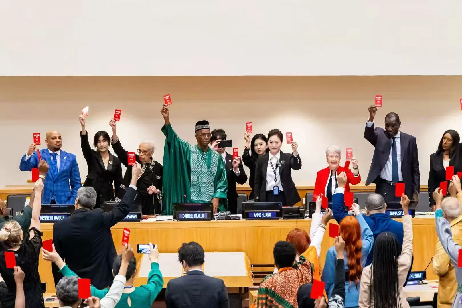 The Summit ended with delegates raising red cards together and declaring: “Zero tolerance for violence. Zero tolerance for discrimination. Together, we commit.”